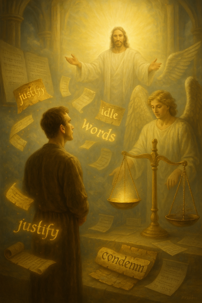 What does this mean, that we will be justified or condemned by our words? It’s far beyond slip-ups in heated moments. Our words reveal the true condition of our hearts. In Greek, the word for “justify” here is dikaioo (δικαιόω), meaning to declare righteous or make innocent. On the other hand, “condemned” is katakrino (κατακρίνω), meaning to pronounce guilty or sentence. Our speech will stand as evidence of whether we’ve lived according to God’s truth or not. This is the divine courtroom where the words we speak act like testimony to the state of our souls.