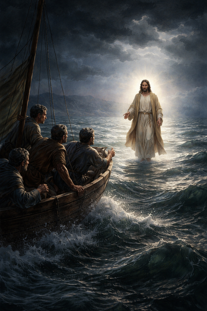 Jesus, perceiving the thoughts of their hearts, knew this was not the path He had come to walk. He withdrew from the crowd, ascending the mountain alone to pray. This was not a retreat born of fear or hesitation. It was communion, alignment, and preparation. Before authority is displayed over wind and waves, Jesus positions Himself in the presence of the Father. He does not allow human expectation to dictate His steps, nor does He allow the awe of miracles to divert His purpose. This quiet, solitary moment of prayer is as crucial to the story as any public miracle. It is the grounding for everything that follows.