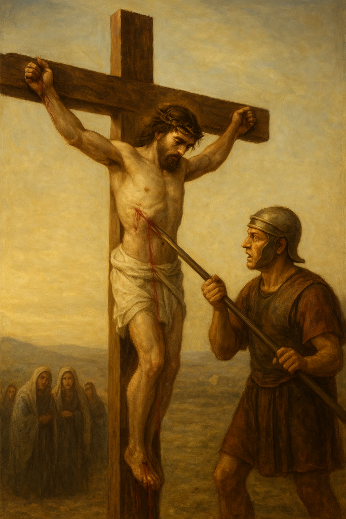 When I felt my last day approaching, I laid the spear beside me. The wood had darkened with years. The metal had dulled. But to me it still shone. And I whispered the first words I ever prayed to Him, not spoken aloud that day at the cross, but spoken in my heart the moment the blood and water touched the earth: